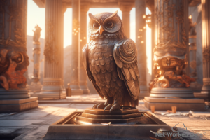 Owl of Athena and Roman column with a figure in front
