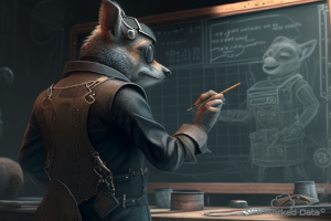 A fox drawing a house on a whiteboard